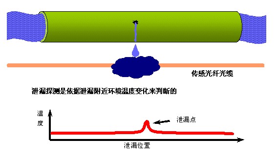 分布式光纤测温系统可监测感温光缆的温度分布,将感温光缆铺设于热力管道下方,当热力管道发生泄漏,周围的温度变化时,分布式光纤测温系统可快速的监测到该温度的变化。