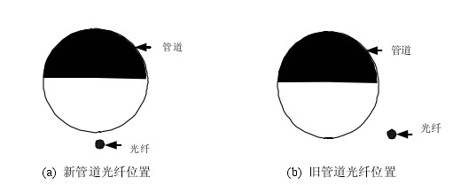 对于新管道,在管道铺设过程中将光缆铺在管道中轴线的下方,如图4-3(a)所示;对于已经铺好的管道,在管道的一边铺设探测光缆,其高度与管道底平齐,如图 4-3(b)所示。
