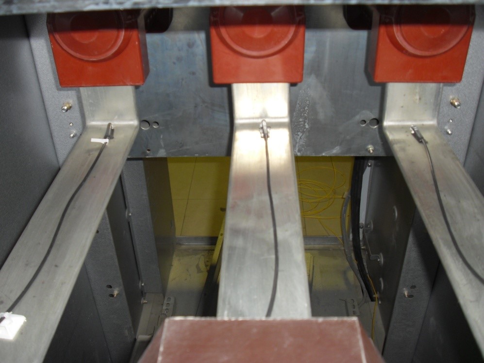 传感器安装在10kv/35kv母排上,光缆要顺着自身母排的绝缘橡胶套走缆。距传感器安装10cm处要用定位吸盘固定紧,尽量避免光缆在柜内缠绕。盘圈的光缆要固定整齐,安装后要求传感器信号正常、安全无隐患。